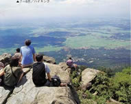 女体山山頂(877m)は360°大パノラマ、関東平野を一望する絶景。富士山に沈む夕陽、遠く鹿島灘から昇る「初日の出」、首都圏方面を望む夜景など、感動がいっぱいの山です。